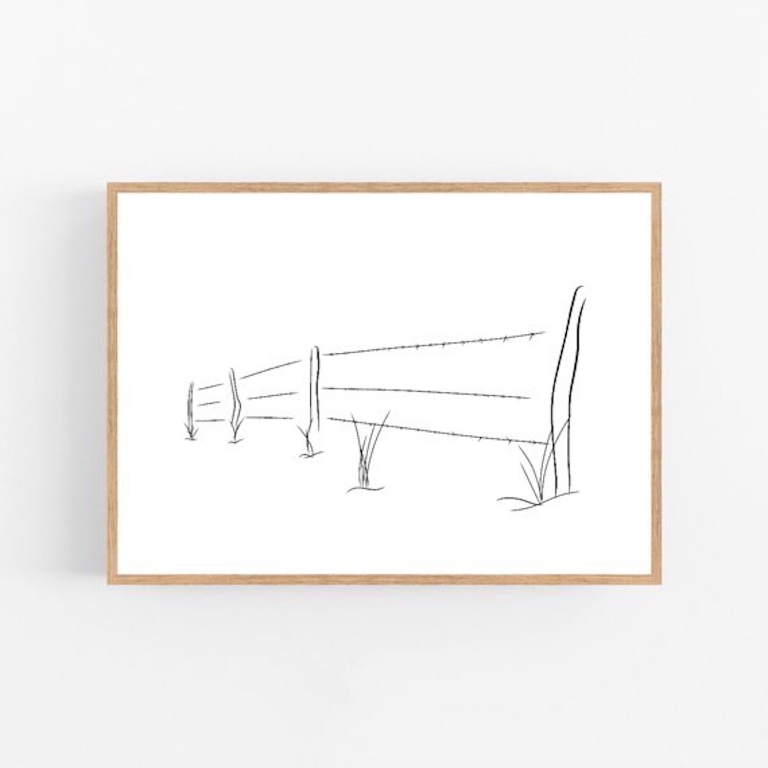 Barbed Wire Line Art Fence Print Abstract Farm Wall Decor Etsy